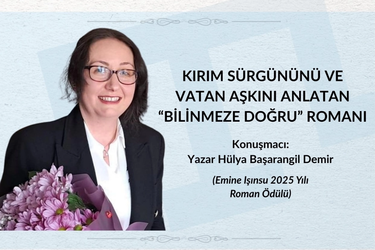 Konferansa, 2025 Emine Işınsu Roman Ödülü'nü Kırım Tatarlarının sürgün hikayesini ele alan "Bilinmeze Doğru" eseriyle kazanan Yazar Hülya Başarangil Demir konuk olacak. Konu, Kırım sürgününü ve vatan aşkını anlatan "Bilinmeze Doğru" romanı olacak.