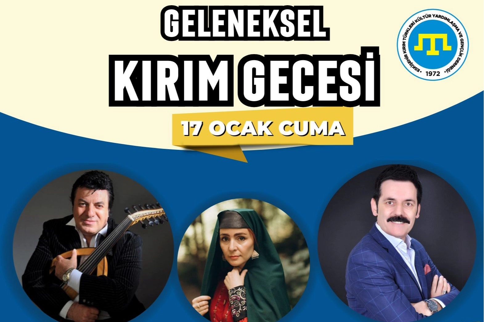 Eskişehir Kırım Derneği tarafından her yıl geleneksel olarak düzenlenen Kırım Gecesi, 17 Ocak 2025 tarihinde Eskişehir'de gerçekleştirilecek. Müzikler ve danslarla Kırım Tatar kültürünün coşkuyla yaşatılacağı Geleneksel Kırım Gecesi'nde Coşkun Sabah, Elvira Sarıhalil ve Ramazan Çelik sahne alacak.
