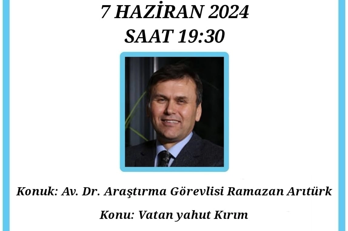 Av. Dr. Ramazan Arıtürk'ün konuşmacı olarak katılacağı program, 7 Haziran 2024 Cuma günü saat 19.30'da Kırım Derneği İstanbul Şubesinde gerçekleştirilecek.