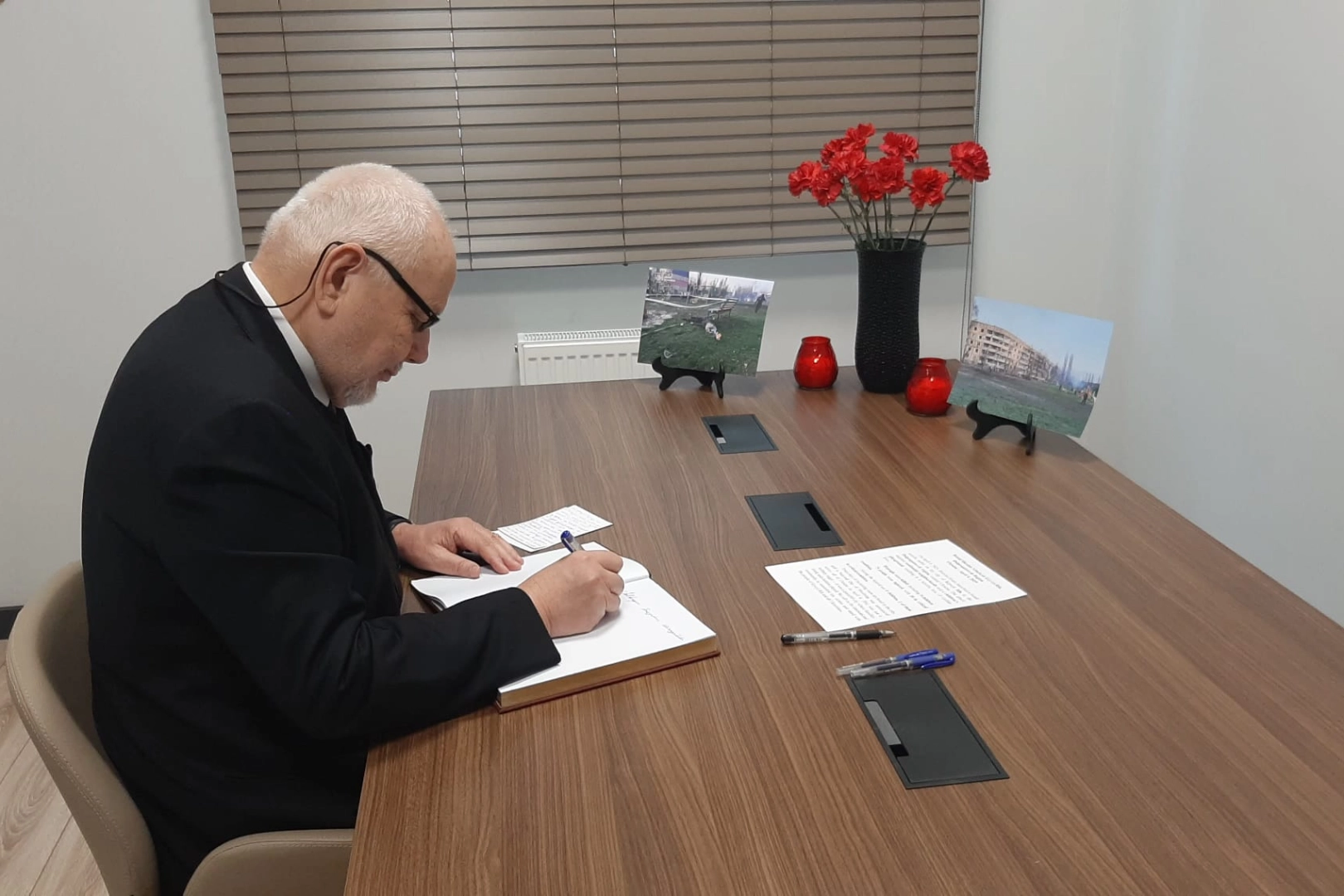 Kırım Türkleri Kültür ve Yardımlaşma Derneği Genel Başkanı Mükremin Şahin, 7 Nisan 2025 tarihinde taziye defterine imza atarak, terör kurbanı Ukraynalı sivilleri andı.