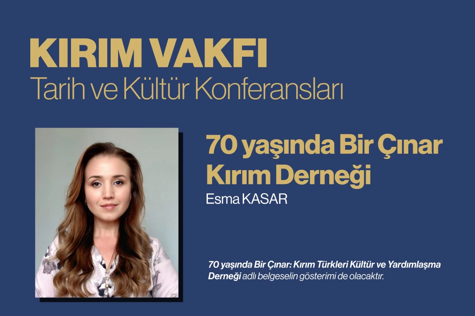 Kırım Türkleri Kültür ve Yardımlaşma Vakfının düzenli olarak her ayın ilk cumartesi günü düzenlediği Tarih ve Kültür Konferansları'nın yeni dönemi başlıyor. 2025-2026 dönemi için açılışını yapacak olan Tarih ve Kültür Konferansları'nın ilk programı Kırım Haber Ajansının (QHA) hazırladığı "70 Yaşında Bir Çınar: Kırım Derneği" belgeseli hakkında olacak.