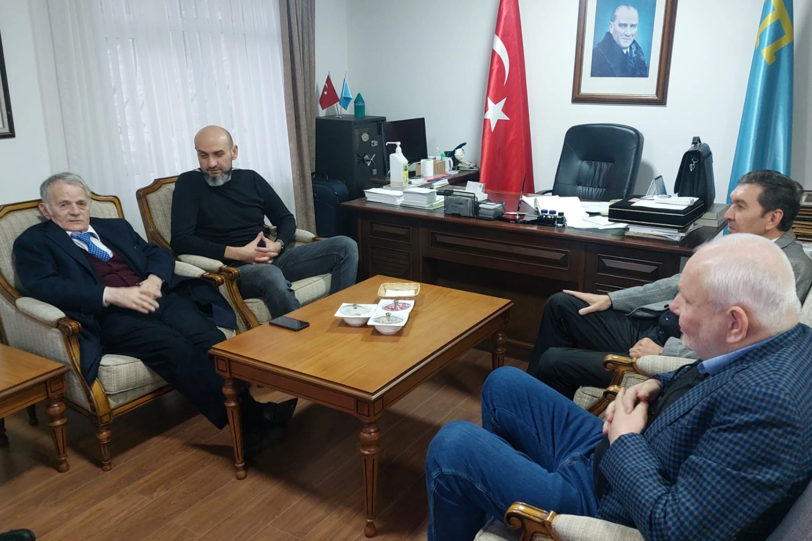 Başkan Mükremin Şahin, Musafa Abdülcemil Kırımoğlu'na Kırım Derneğinin faaliyetleri ve hayata geçirilecek olan yeni projeler hakkında bilgi verdi. Görüşmede, Ukrayna ve özellikle Rus işgali altındaki Kırım'ın mevcut durumu hakkında istişare yapıldı.