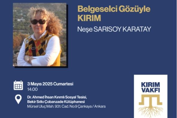 3 Mayıs 2025 tarihinde tertip edilecek programda; belgesel çalışmaları sırasında Han Sarayı gibi eşsiz kültürel eserleri ile Kırım’ı görüntüleyen, dünyaya örnek olacak bir vatan mücadelesi ile Kırım Tatarlarının sürgün ve vatanda yaşama hikayelerini dinleyen, kaydeden ve kurgulayan Neşe Sarısoy Karatay izlenimlerini katılımcılar ile paylaşacak.