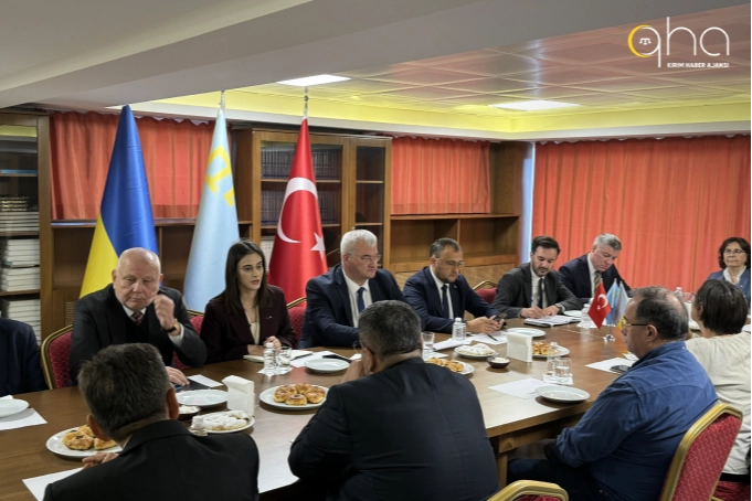 — QHA - Kırım Haber Ajansı (@qha_kirimhaber) October 21, 2024Ziyaret kapsamında derneğin genel merkezinde; Ukrayna Dışişleri Bakanlığı Sözcüsü Georgıy Tıhıy (Heorhii Tykhyi), Ukrayna'nın Ankara Büyükelçisi Vasıl Bodnar, Kırım Derneği Genel Başkanı Mükremin Şahin, Kırım Vakfı Başkanı Tuncer Kalkay, Ukrayna Büyükelçiliği Elçi Müsteşarı Oleksiy Çernışev, Kırım Tatar Teşkilatları Platformu ve Kırım Gelişim Vakfı Başkanı Ümit Şilit, Kırım Tatar Milli Meclisi (KTMM) Üyesi Gayana Yüksel, Dünya Kırım Tatar Kongresi (DQTK) Genel Sekreteri, Kırım Derneği Başkan Vekili Av. Namık Kemal Bayar, Kırım Derneği Genel Başkan Yardımcısı İsmet Yüksel, Türkiye Ukrayna Dostluk Derneği Başkanı Celil Sümer ve diasporadan birçok isim yer aldı.