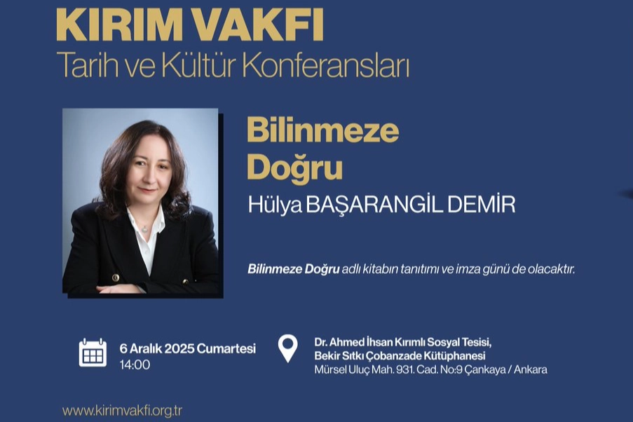 Kırım Türkleri Kültür ve Yardımlaşma Vakfının düzenli olarak her ayın ilk cumartesi günü düzenlediği Tarih ve Kültür Konferansları, “Bilinmeze Doğru” adlı eserin yazarı Hülya Başarangil Demir’i konuk edecek.