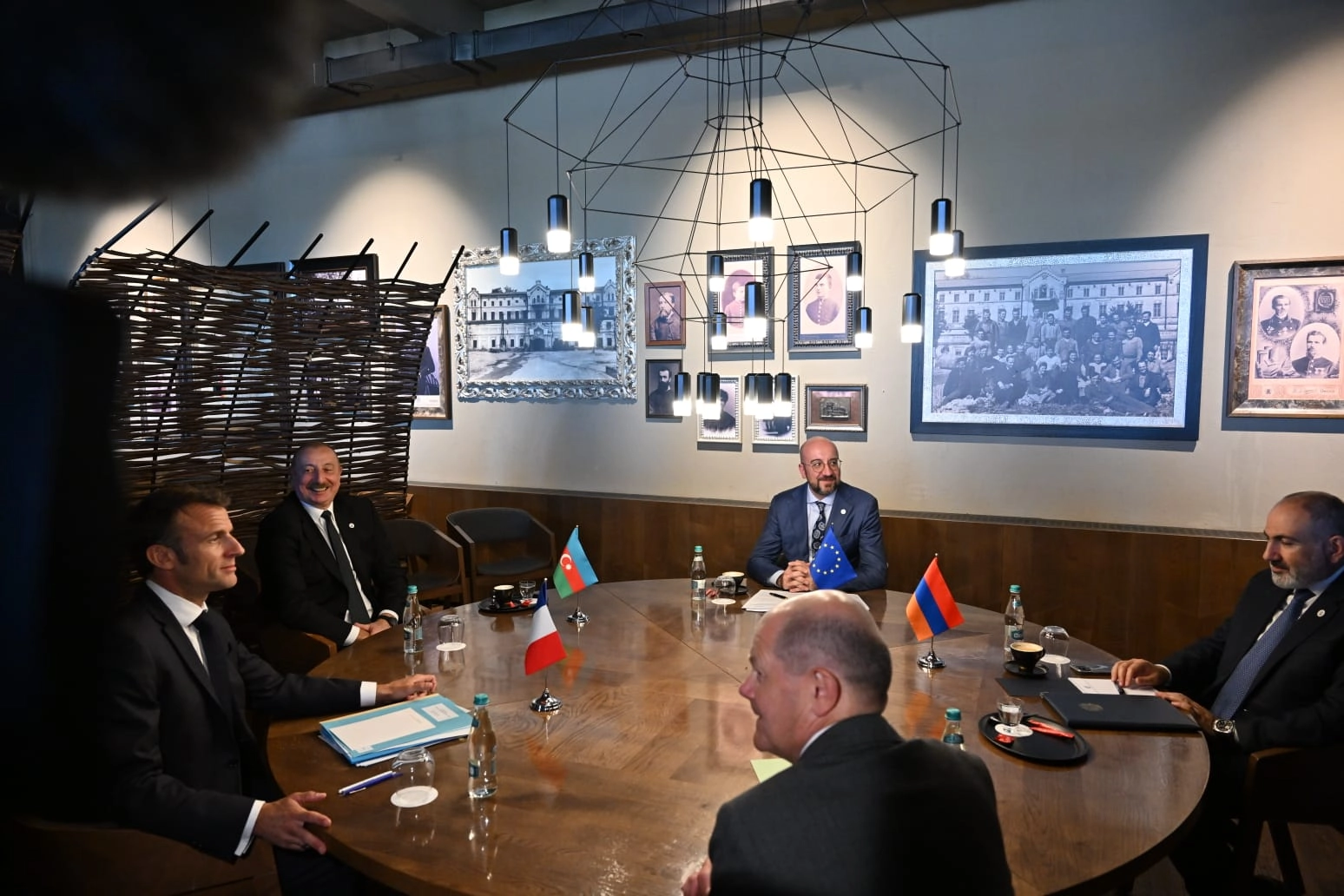 Moldova Cumhuriyeti'nin başkenti Kişinev'de düzenlenen Avrupa Siyasi Topluluğu 2. Zirvesi kapsamında Azerbaycan ile Ermenistan liderleri beşli toplantıda bir araya geldi.