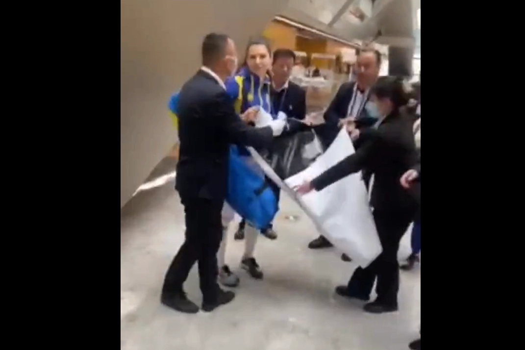 Çin'de düzenlenen Eskrim Dünya Kupası müsabakalarına katılan Ukrayna Eskrim Milli Takımı, Rusya tarafından öldürülen Ukraynalı sporcular için hazırladıkları "Spor Meleği" pankartı ile fotoğraf çekilmek isterken Çinli yetkililer tarafından engellendi.