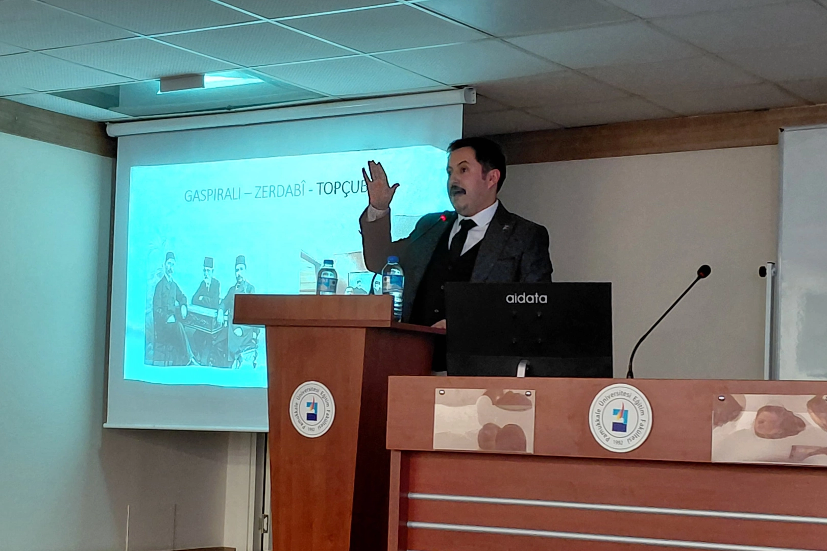 "Farklı Yönleriyle İsmail Gaspıralı" adı verilen konferansın konuşmacısı, Pamukkale Üniversitesi İnsan ve Toplum Bilimleri Fakültesi Türk Dili ve Edebiyatı Bölümü Araştırma Görevlisi Dr. Orhan Baldane oldu. Dr. Baldane; büyük Kırım Tatar aydını Gaspıralı'nın hayat hikayesini ve gazeteci, dilci, yazar, eleştirmen, siyasetçi ve insani yönlerini ele alan kapsamlı bir sunum gerçekleştirdi. Gaspıralı'nın yaşadığı dönemi ve mücadelesini örnekleriyle aktaran Baldane, onun çok yönlü kişiliği hakkında bilgiler verdi ve öncü kişiliği ve rehber rolüne dikkat çekti. Konferansın soru-cevap kısmında ise Rus işgalindeki Kırım ve Ukrayna-Rusya Savaşı'na ilişkin öğrencilerin merak ettiği konu başlıkları hakkında Kırım Haber Ajansı Başeditörü Ömer Cihad Kaya konuştu.