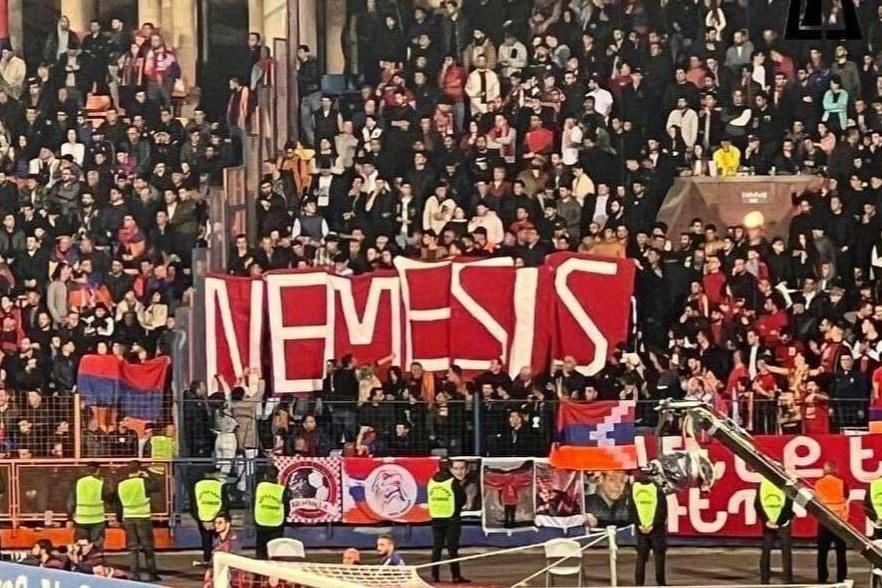 Ermeni taraftarlar tribünden, Türk aydınlarını katleden Ermeni terörizminin operasyonun ismini taşıyan “Nemesis” yazılı bir poster açtı. Ermeni taraftarların bu skandal hareketi, Türk taraftarların tepki topladı.