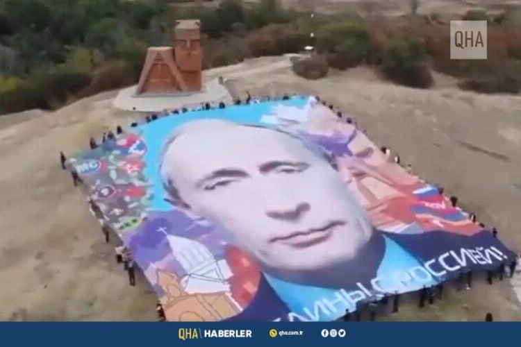 Karabağ'daki Ermeniler, Putin'in 70. yaş gününü kutladı. Kremlin'in Ukrayna'da işlediği savaş suçları ve başlattığı savaşı destekleyen Ermeniler, Karabağ'da bugün bir provokasyona daha imza attı. Savaş suçlusu, bebek katili Rus lider Vladimir Putin'in doğum gününü kutlayan Ermeniler, Putin'in posterini açarak savaş suçlusu Putin'e "sevgi gösterisi" yaptı.