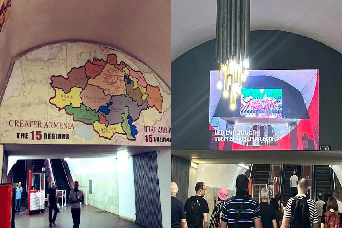 Azerbaycan ile Ermenistan arasındaki barış anlaşması süreci devam ederken, Ermenistan’ın başkenti Erivan’da merkez metro durağında asılı olan sözde “Büyük Ermenistan” haritası hükumet yetkililerinin kararı uyarınca indirildi.