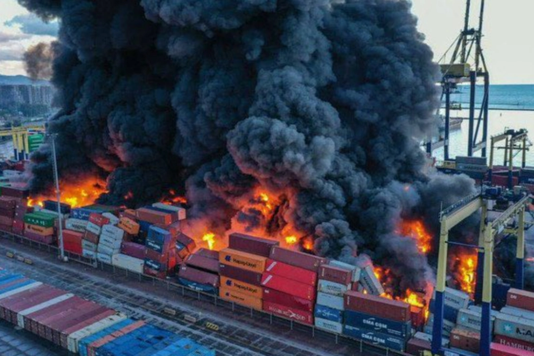 Kahramanmaraş merkezli ve 10 ili etkileyen depremler sırasında dün henüz belirlenemeyen nedenle konteynerlerde çıkan yangının sürdüğü bildirildi.