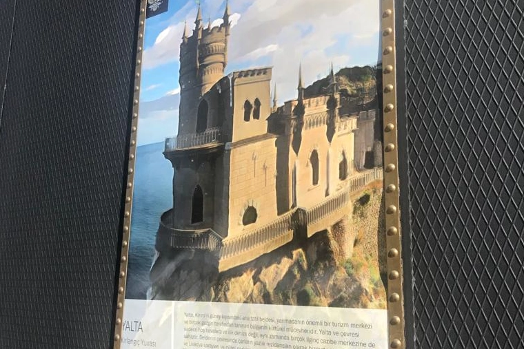 Yalta’da bulunan “Kırlangıç Yuvası” kalesinin resmini büyükelçilik binalarına asan Ruslar, Kırım’ı da kendi topraklarının bir parçası gibi gösterdi.