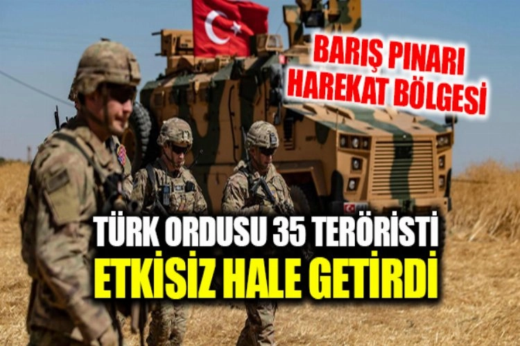 Türk Silahlı Kuvvetlerinin denetimindeki Suriye'nin kuzeyindeki Barış Pınarı harekat bölgesinde, üç günde 35 PKK/YPG'li terörist etkisiz hale getirildi. Milli Savunma Bakanlığından bugün yapılan açıklamada, Barış Pınarı bölgesinde saldırı gerçekleştiren 3 PKK/YPG'li teröristin komandolar tarafından etkisiz hale getirildiği açıklandı. Bu kapsamda, bölgede son 3 günde etkisiz hale getirilen terörist sayısı 35 oldu.