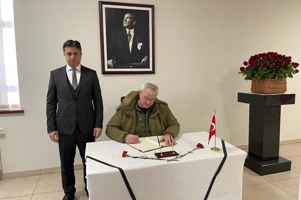 "Türkiye'nin Kıyiv Büyükelçiliğinde depremzedeler için açılan taziye defterini imzaladım. Son 100 yılın meydana gelen en korkunç deprem felaketinin sonuçlarının üstesinden gelmek ve hayatları kurtarmak için yardımcı oluyoruz. Ukrayna dost Türk halkının yanındadır."