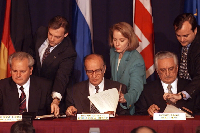 Sırpların 1992-1995 yılları arasında Bosna Hersek'te sürdürdüğü savaşı sonlandıran Dayton Barış Anlaşması 29 yıl önce bugün paraf edildi. Bosna Hersek, Hırvatistan ve Sırbistan liderlerinin masaya oturarak imzaladığı anlaşma, kanlı savaşları bitirdi ve Bosna Hersek'te yönetim sistemini değiştirdi.