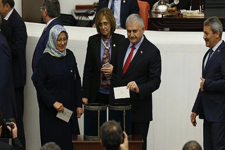 Türkiye Büyük Millet Meclisi (TBMM) Genel Kurulu’nda, AK Parti'nin anayasa değişiklik teklifinin maddelerine geçilmesi, 338 oyla kabul edildi. Teklifin maddelerine geçilmesine dair gizli oylamada, 480 oy kullanıldı. Anadolu Ajansı’nın aktardığına göre, teklifin maddelerine geçilmesi 338 oyla kabul edilirken, 134 milletvekili ret oyu verdi. Oylamada 2 oy çekimser, 5 oy boş kullanıldı, 1 oy da geçersiz sayıldı. Teklifin maddelerine geçilmesinin 338 oyla kabulünü, AK Parti'li milletvekilleri alkışlarla karşıladı. "Gizli oylama esasına uygun gerçekleştirildi" TBMM Başkanvekili Ahmet Aydın, anayasa değişiklik teklifinin maddelerine geçilmesine ilişkin gizli oylamanın esasına uygun olarak gerçekleştirildiğini söyledi. Teklifin maddelerine geçilmesine ilişkin oylamanın ardından söz alan CHP Grup Başkanvekili Engin Altay, çoğunluk partisine sahip milletvekillerinin neredeyse tamamının oy kabinlerine girmeden, dışarıdan ve göstererek oy kullandıkları savundu. AK Parti Grup Başkanvekili Mustafa Elitaş ise Meclis İçtüzüğü'ne göre, milletvekillerinin usulüne uygun şekilde oylamayı gerçekleştirdiklerini belirterek, "Kameraman olmaya çok hevesli arkadaşlar canlı yayın alışkanlığını sürdürüyorlar. Gizliliği ihlal eden varsa burada çekim yapan milletvekilleridir." diye konuştu. TBMM Başkanvekili Aydın da gizli oylamanın, esasına uygun olarak gerçekleştirildiğini ifade etti. Oylama sonrası teklifin birinci maddesi okundu. Verilen aranın ardından hükümet ve komisyonun yerine oturmaması üzerine Aydın, bugün saat 15.00'te yeniden toplanmak üzere birleşimi kapattı. Öte yandan, Türkiye Başbakanı Binali Yıldırım, Genel Kurul'dan ayrılmadan önce MHP Genel Başkanı Devlet Bahçeli ile tokalaştı.