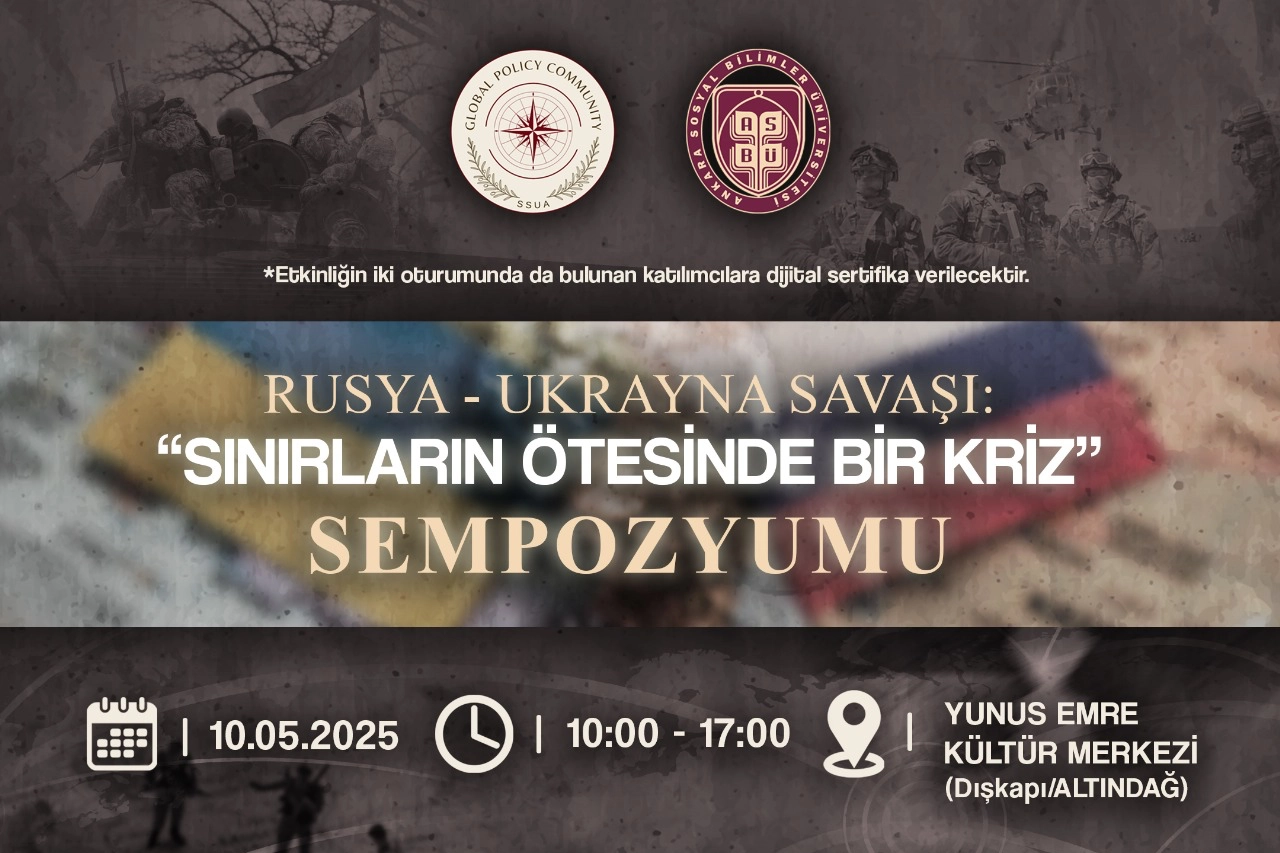 Ankara’da 10 Mayıs 2025 tarihinde “Rusya-Ukrayna Savaşı: Sınırların Ötesinde Bir Kriz” isimli sempozyum düzenlenecek. Sempozyum; Türkiye Cumhuriyeti Gençlik ve Spor Bakanlığı, Anakara Sosyal Bilimler Üniversitesi (ASBÜ) ASBÜ Küresel Politika Topluluğu (SSUA), Türkiye Cumhuriyeti Gençlik ve Spor Bakanlığı Gençlik Hizmetleri Genel Müdürlüğü Üniversitesi Öğrenci Toplulukları İş Birliği ve Destek Programı (ÜNİDES), Türkiye Cumhuriyeti Gençlik ve Spor Bakanlığı Altındağ Gençlik Merkezi iş birliğinde düzenleniyor.