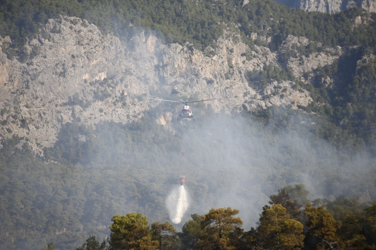 Yangına havadan yoğun bir şekilde müdahale devam ediyor. Saatlerdir devam eden yangına müdahale için 11 uçak, 22 helikopter, 62 arazöz ve bin 50 personel sahada yangın söndürme çalışmalarını sürdürüyor.