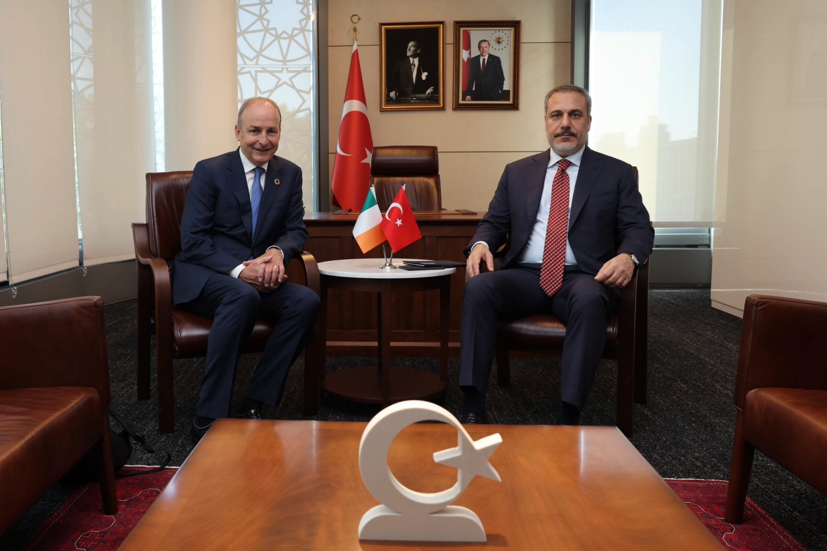 Bakan Fidan, BM Genel Kurulu kapsamında İrlanda Başbakan Yardımcısı, Dışişleri ve Savunma Bakanı Micheal Martin ile bir araya geldi. Türkevi'nde görüşen mevkidaşlar; ülkeler arasındaki ikili ilişkileri, Rusya'nın tek taraflı çekildiği Tahıl Koridoru Anlaşması'nı, Kıbrıs meselesine ilişkin son gelişmeleri ve Türkiye-Avrupa Birliği (AB) arasındaki ilişkileri ele aldı.