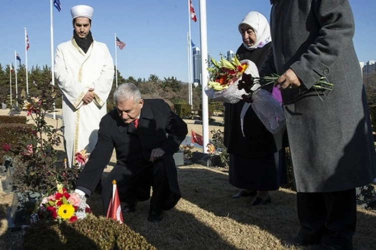 Anadolu Ajansı'nın haberine göre Busan'da, Kore savaşı anısına Birleşmiş Milletler (BM) tarafından yaptırılan BM Anıtsal Mezarlığı'ndaki Türk Şehitliği'ni ziyaret eden Yıldırım'a, eşi Semiha Yıldırım'ın yanı sıra Bilim, Sanayi ve Teknoloji Bakanı Faruk Özlü, Ekonomi Bakanı Nihat Zeybekci, Enerji ve Tabii Kaynaklar Bakanı Berat Albayrak, AK Parti Grup Başkanvekili Bülent Turan, AK Parti Genel Başkan Yardımcısı Hamza Dağ, Türkiye'nin Seul Büyükelçisi Arslan Hakan Okçal, milletvekilleri ile diğer yetkililer eşlik etti. Daha sonra Türk şehitlerin kabirlerinin bulunduğu bölüme geçen Yıldırım'ın, Türk Şehitliği anıtına çelenk bırakmasının ardından saygı duruşunda bulunuldu.