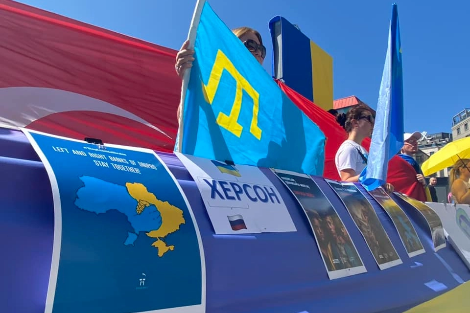 "Uzun süredir birbirine bağlı iki millet olarak yan yana duruyoruz. Yüzyıllardır yaşam hakkı için mücadele eden iki halk; Kırım için, tüm Ukrayna için birlikte mücadele ediyor. Rusya'nın 2014'te başlattığı savaş da ortak mücadelemizin kanıtıdır. Biz Herson bölgesinin sakinleri, Ukrayna toprak bütünlüğünü savunarak 9 yıldır Kırım’ın idari sınırında Ukrayna ve Kırım Tatar bayraklarıyla eylemler düzenledik. 2014 yılında Kırım Tatar bayrağı, dünyadaki birçok insan için yılmazlığın, hak ve özgürlük mücadelesinin sembolü haline geldi. Ve 24 Şubat 2022'den sonra Kırım Tatar bayrağı, Ukrayna bayrağıyla birlikte çatışmaların en sıcak noktalarında dalgalanmaya başladı. Bugün iki bayrak ortak olan özgürlük arzumuz için birleşiyor"