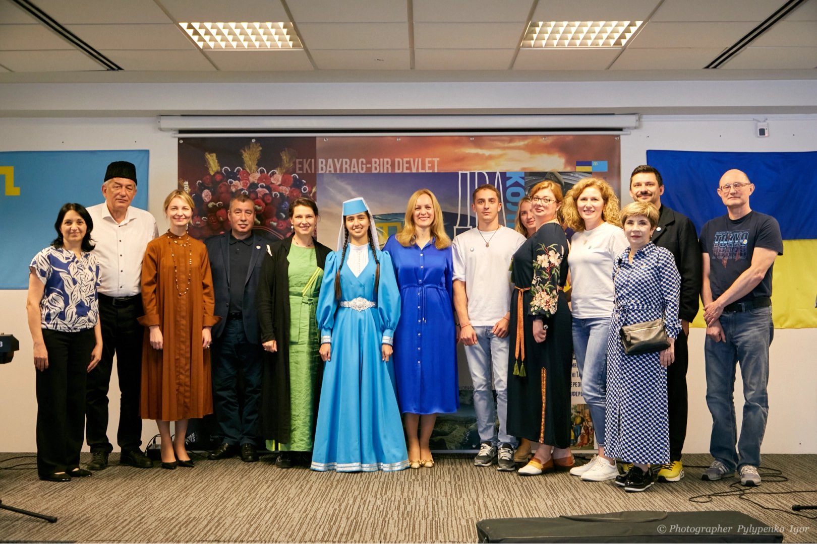 Öte yandan programda yer alan Ukrayna Maslahatgüzârı Natalya Anoşina konuşmasında, "Altın işaretli (Tarak Tamgalı) mavi bayrak, anavatanda yaşama hakkı mücadelesinin, özgürlük mücadelesinin ve öz tayin hakkının sembolüdür. Bu bayrak siperlerde ve cephede Ukrayna devletini savunanların yanında, tüm Kırım Tatar halkının gücünün ve cesaretinin bir ifadesi" dedi.