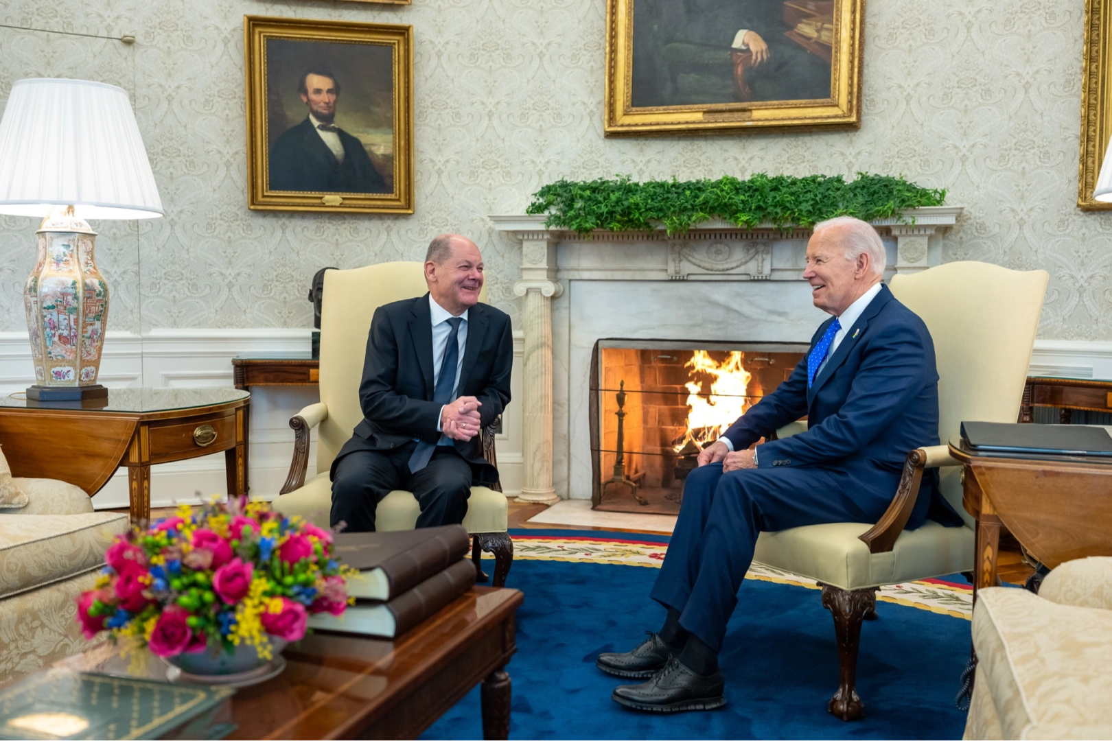 Amerika Birleşik Devletleri (ABD) Başkanı Joe Biden, Almanya Başbakanı Olaf Scholz'u 9 Ocak 2024 tarihinde Beyaz Saray'da ağırladı. İki lider, Oval Ofis'te kameralar karşısına geçerek Ukrayna'ya destek konusundaki görüşlerini paylaştı.