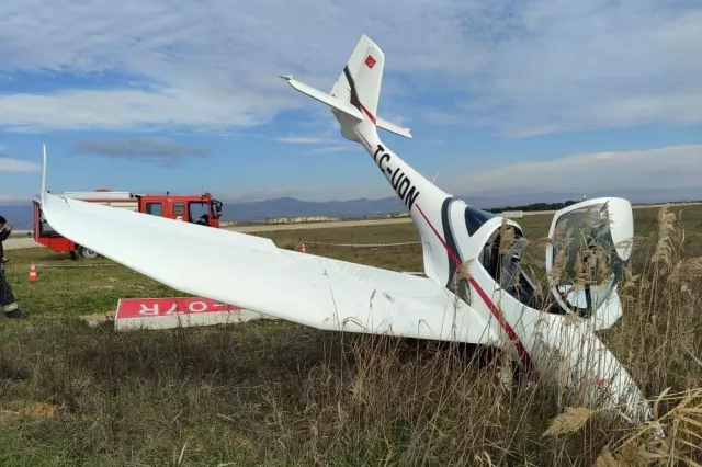 Bursa'nın Yenişehir Havaalanında bir eğitim uçağı bugün öğle saatlerinde pistten kalktığı esnada düştü.