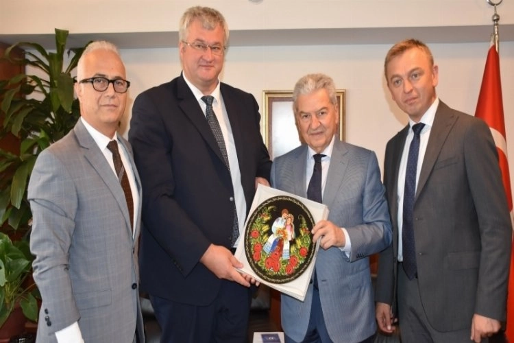 Bugün 14 Ağustos'ta Ukrayna'nın Ankara Büyükelçisi Andriy Sıbiga, Ukrayna İstanbul Başkonsolosu Oleksandr Gaman ve Ukrayna İzmir Fahri Konsolosu Çetin Güvercin, İzmir Ticaret Odası Yönetim Kurulu Başkanı Ekrem Demirtaş’ı ziyaret ederek iki ülke arsındaki ticari işbirliğinin arttırılmasına yönelik fırsatları ele aldı. Büyükelçi Sıbiga, İzmir’e özel yatırım projelerini içeren bir dosyayı İTO Başkanı Ekrem Demirtaş’a sundu.