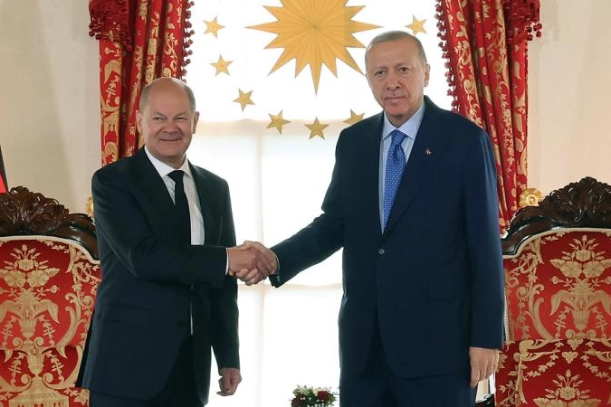 Türkiye Cumhuriyeti Cumhurbaşkanı Recep Tayyip Erdoğan, Almanya Başbakanı Olaf Scholz’u bugün Cumhurbaşkanlığı Dolmabahçe Ofisi'nde kabul etti.