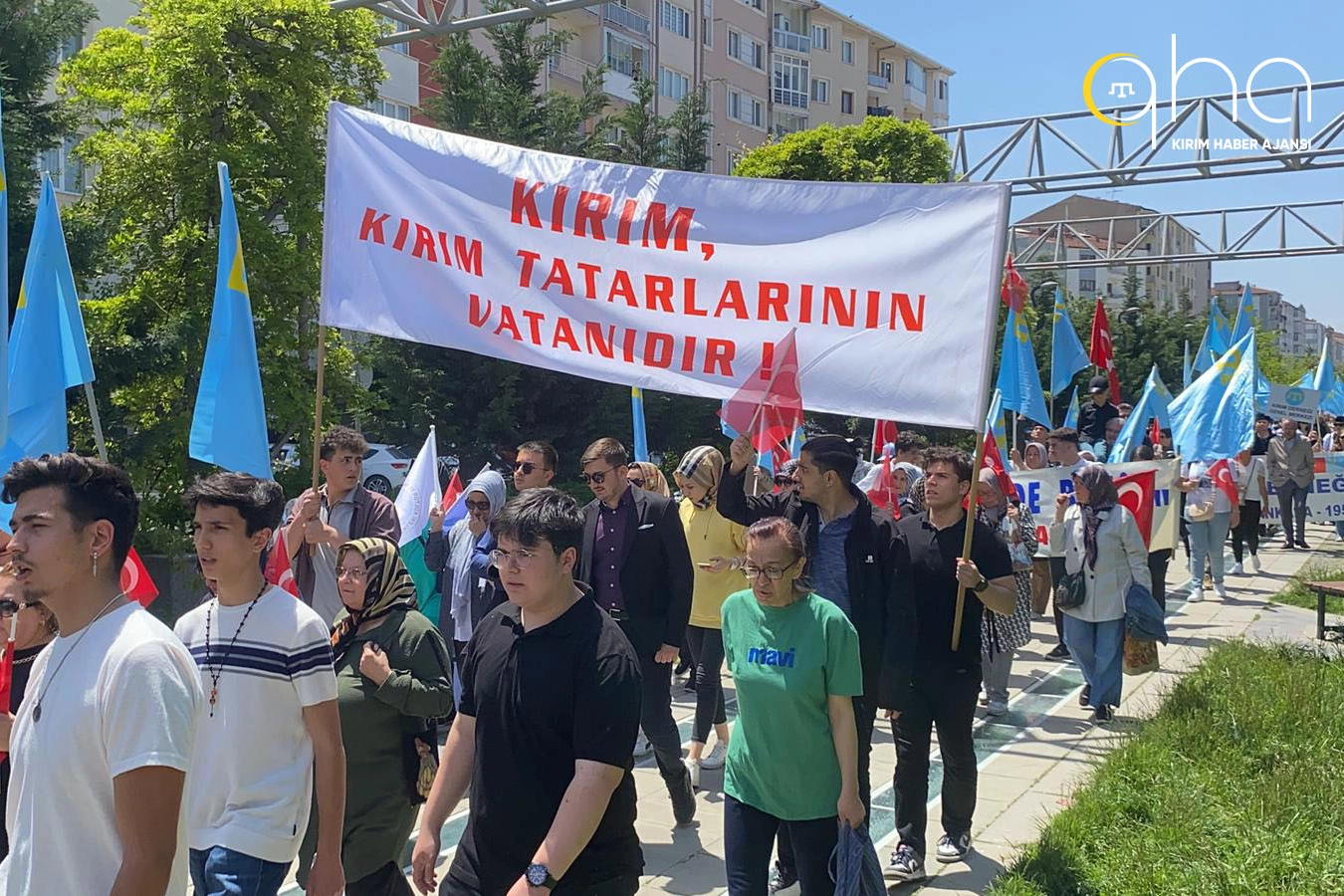Eskişehir'de 18 Mayıs 1944 Kırım Tatar Sürgünü ve Soykırımı’nın 80. yıl dönümünde düzenlenen anma programı, saat 12.00'de Ulus Meydanı'nda geçekleşen Büyük Anma Yürüyüşü ile başladı. Tarak tamgalı gök bayrak, Ukrayna bayrağı ve Türk bayrakları ile yürüşe katılan vatandaşlar “Vatanım Kırım” türküsünü söyledi.