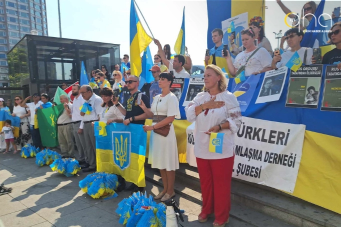 Ukrayna Kültür Derneği tarafından bugün İstanbul’da 24 Ağustos Ukrayna Bağımsızlık Günü etkinlikleri kapsamında protesto eylemi gerçekleştirildi. Eylemde, geniş çaplı işgal saldırısına karşı 547 gündür mücadele veren Ukrayna halkının kahramanca direnişine ve Rusya’nın Ukrayna’da işlediği savaş suçlarına dikkat çekildi.