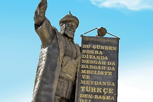 Şimden gerü hiç kimesne kapuda ve dîvânda ve mecâlis ve seyrânda Türkî dilinden gayrı dil söylemeyeler. (Bugünden sonra divanda, dergahta mecliste ve meydanda Türk dilinden başka dil konuşulmayacaktır)