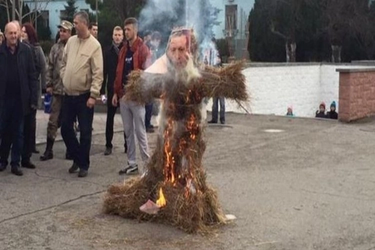 İşgal edilen Kırım’ın başkenti Akmescit’te düzenlenen mitingde Türkiye Cumhurbaşkanı Recep Tayyip Erdoğan’ın kuklası yakıldı. Akmescit’te 27 Kasım tarihinde düzenlenen mitinge yaklaşık 30 kişi katıldı. Miting katılımcıları, samandan bir kukla hazırlayarak ve kuklanın yüzü bulunması gerektiği yere Türkiye Cumhurbaşkanı Recep Tayyip Erdoğan’ın resmini yerleştirdi. Ardından eylemciler, Rusya Devlet Başkanı Vladmir Putin’e desteklerini bildirmek için söz konusu kuklayı yaktı. Mitinge katılan eylemcileri ellerinde “Sırtından vuruş” ve “Yaşasın Rusya Hava Uzay Kuvvetleri” yazılı pankartlar tuttu. İşgalci yerel yönetimin söz konusu mitingin yapılması için izin verdi. Mitingin yapılmasının ardından eylemciler dağıldı. Daha önce Rusya'nın Ulyanovsk şehrinde 24 Kasım akşam saatlerinde Türk Anadolu Efes şirketine ait Efes Rus şirketinin ofisine saldırı düzenlenerek Türk bayrağına hakaret edildiği bildirilmişti. Ayrıca şirketin kapısının önündeki asfalta Türkiye Cumhurbaşkanı Recep Tayyip Erdoğan'a hakaret içeren yazılar yazılmıştı.