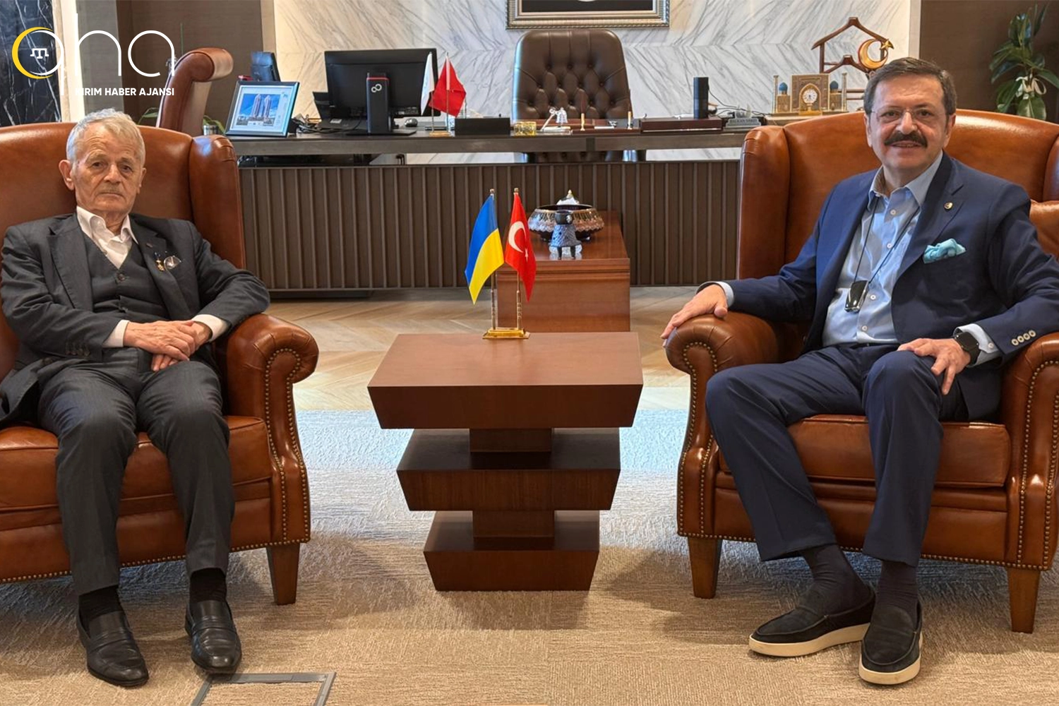 Türk dünyasının yaşayan efsanesi, Kırım Tatar halkının millî lideri ve Ukrayna Milletvekili Mustafa Abdülcemil Kırımoğlu, Ankara'daki resmî temasları çerçevesinde 17 Temmuz 2024 tarihinde Türkiye Odalar ve Borsalar Birliği (TOBB) Başkanı Mustafa Rifat Hisarcıklıoğlu ile bir araya geldi.