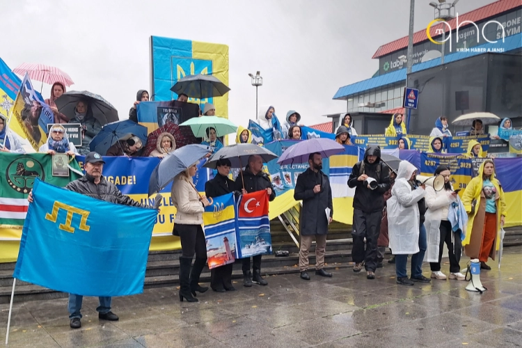 Ardından İstanbul'daki Ukraynalılar, Odakule Meydanı’nda gerçekleştirdikleri eylemde, işgalci Rusya'nın Ukrayna halkına karşı yüzyıllar boyunca yürüttüğü baskı ve soykırım politikasını kınadı.
