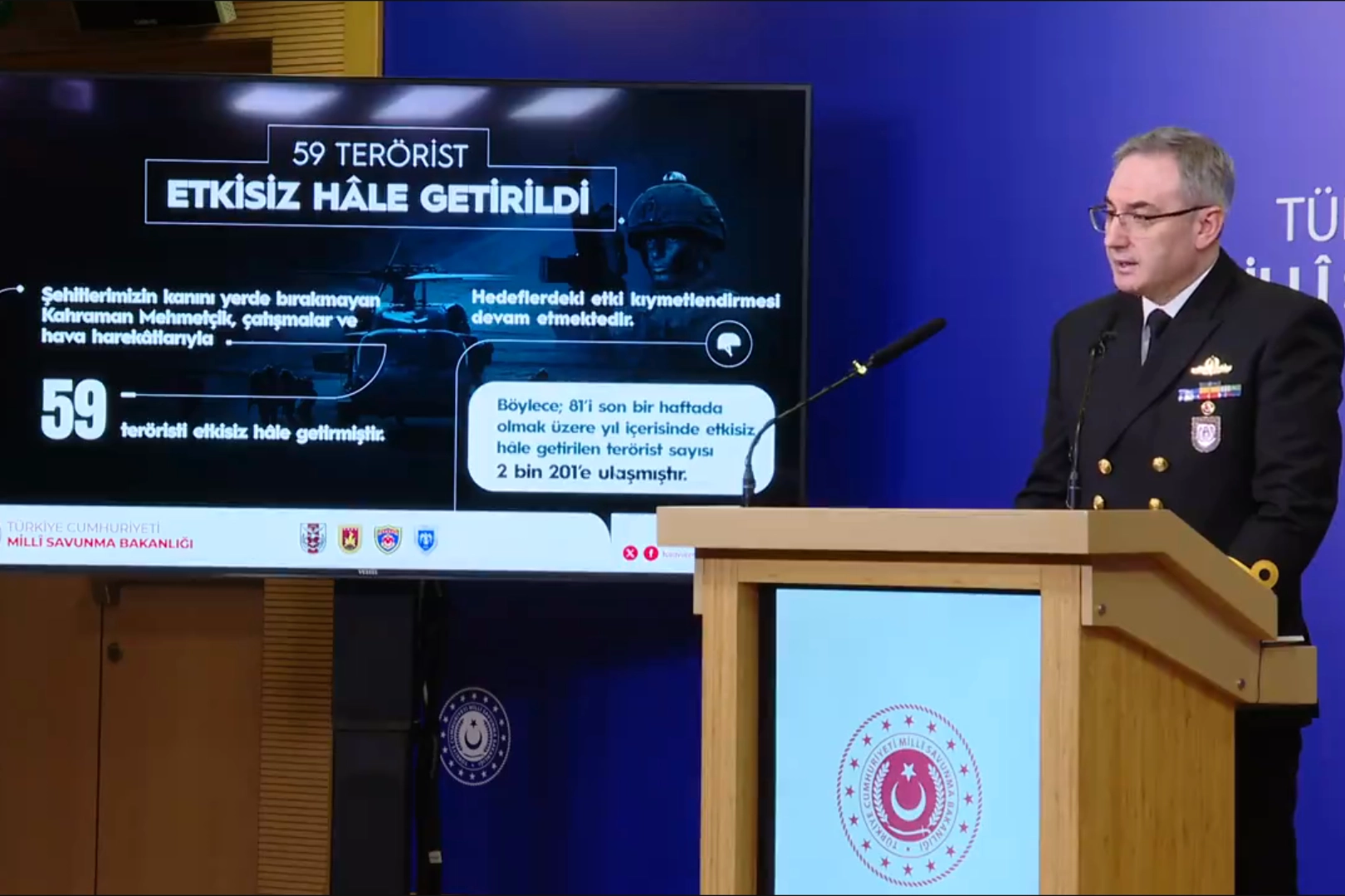 Türk Silahlı Kuvvetlerinin (TSK) bölücü terör örgütü PKK ve uzantılarının saldırılarını engellediğini duyuran Tuğamiral Aktürk, "Hain terör saldırıları sonrası Irak ve Suriye’nin kuzeyinde bulunan terör hedeflerine yönelik icra edilen hava harekâtlarıyla içerisinde sorumlu düzeyde teröristlerin de bulunduğu değerlendirilen mağara, sığınak, barınak, petrol tesisi ve depolardan oluşan toplam 71 hedef başarıyla imha edilmiştir. Şehitlerimizin kanını yerde bırakmayan Kahraman Mehmetçik; çatışmalar, ateş destek vasıtaları ve hava harekâtları ile bölgede toplam 59 teröristi etkisiz hâle getirmiştir. Hedeflerdeki etki kıymetlendirmesi devam etmektedir. Böylece 81’i son bir haftada olmak üzere yıl içerisinde etkisiz hâle getirilen terörist sayısı 2.201’e ulaşmıştır" dedi.