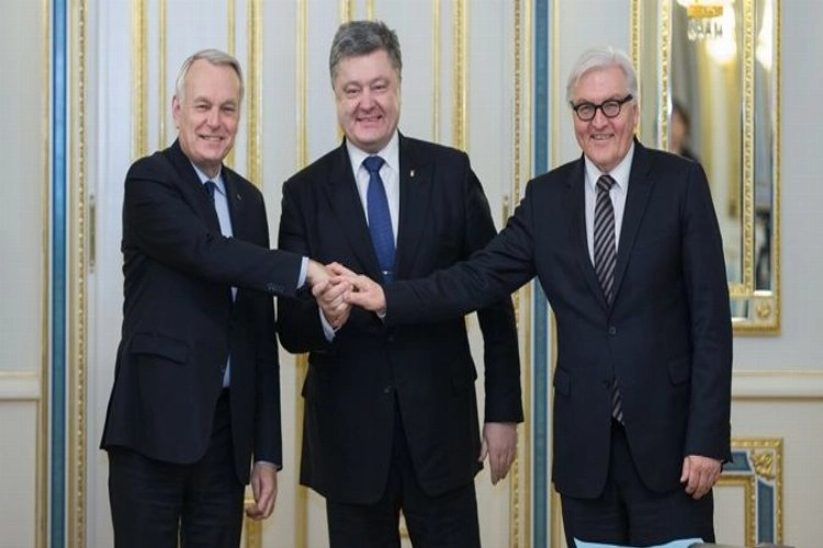 Ukrayna Cumhurbaşkanı Petro Poroşenko, Almanya Dışişleri Bakanı Frank-Walter Steinmeier ve Fransa Dışişleri Bakanı Jean-Marc Ayrault ile bir araya geldi.