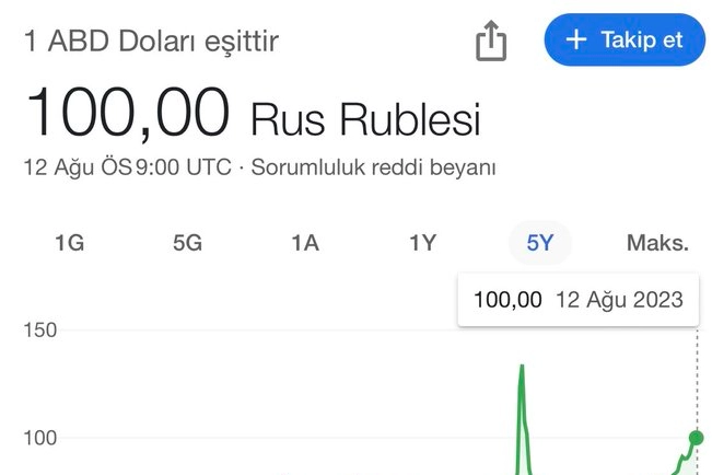 Rusya, cephede verdiği ağır kayıpların ardından ekonomi alanında da çöküşü yaşamaya devam ediyor. Rus rublesi, 2020 yılının Kasım ayından bu yana en düşük seviyesine geriledi. Rusya’nın faiz artışı ve enerji alışverişinin bir kısmını ruble ile yapma zorunluluğuna rağmen ekonomik istikrar sağlanamadı. Yaşanan istikrarsızlık sonucunda 1 Amerikan doları, 100 Rus rublesine denk oldu.