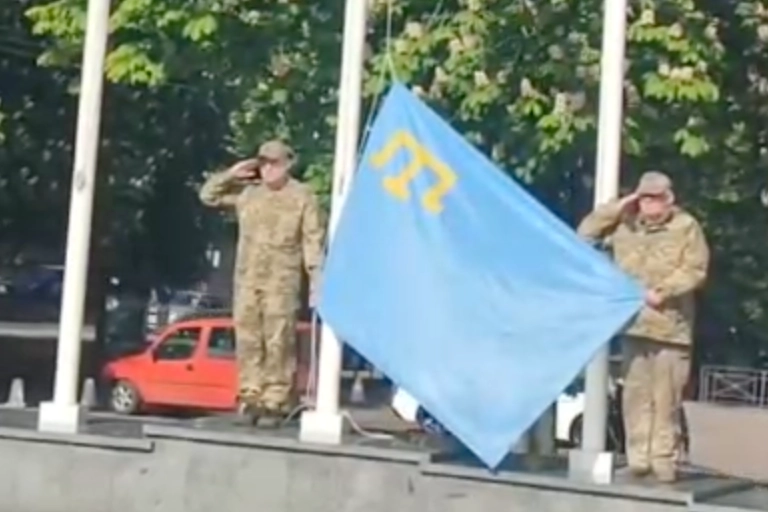 Sonrasında 1944 Kırım Tatar Sürgünü ve Soykırımı’nda hayatını kaybeden şehitlerin anısına bayraklar yarıya indirildi.