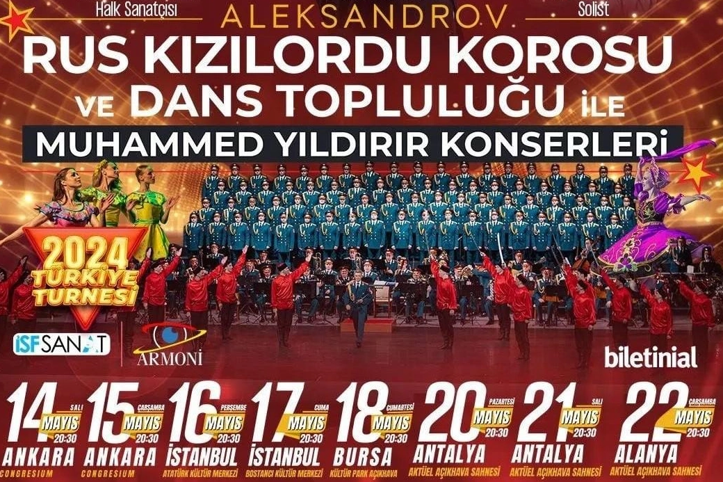 Rus Kızıl Ordu Korosu ve Dans Topluluğu, Türkiye turnesi adı altında tarihi bir skandala imza atacak. Rus Kızıl Ordu Korosu, Türkiye'de yaşayan Kırım Tatar ve Çerkes halklarına karşı Ruslar tarafından uygulanan soykırım ve sürgünün yıl dönümlerinde bu konserleri düzenleyerek; bu halkların trajedisini ve kendi işgalci geçmişlerini unutturmayı amaçlıyor.