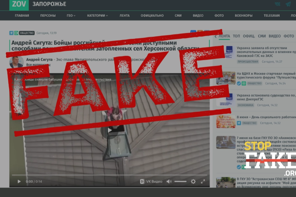 Rus basını, Kahovka Barajı’ndaki patlama nedeniyle su altında kalan Oleşkı kentinde çatı katında mahsur kalan aileye yardım eden Ukraynalı askerlerin videosunu çaldı. Propagandacılar, Ukraynalı askerlerin düzenlediği kurtarma operasyonunun görüntülerini paylaşarak, “Rus askerleri elinden geldiği kadar yerel halka yardım ediyor” başlıklı bir haber yayımladı.