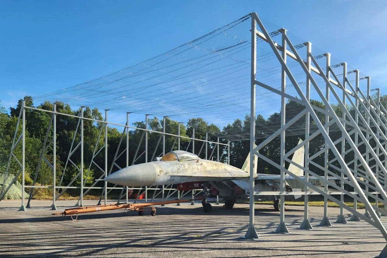Rus kanallarında paylaşılan fotoğrafta, bir us uçağının yan ve üst taraflarının tellerle çevrili olduğu görüntülendi.