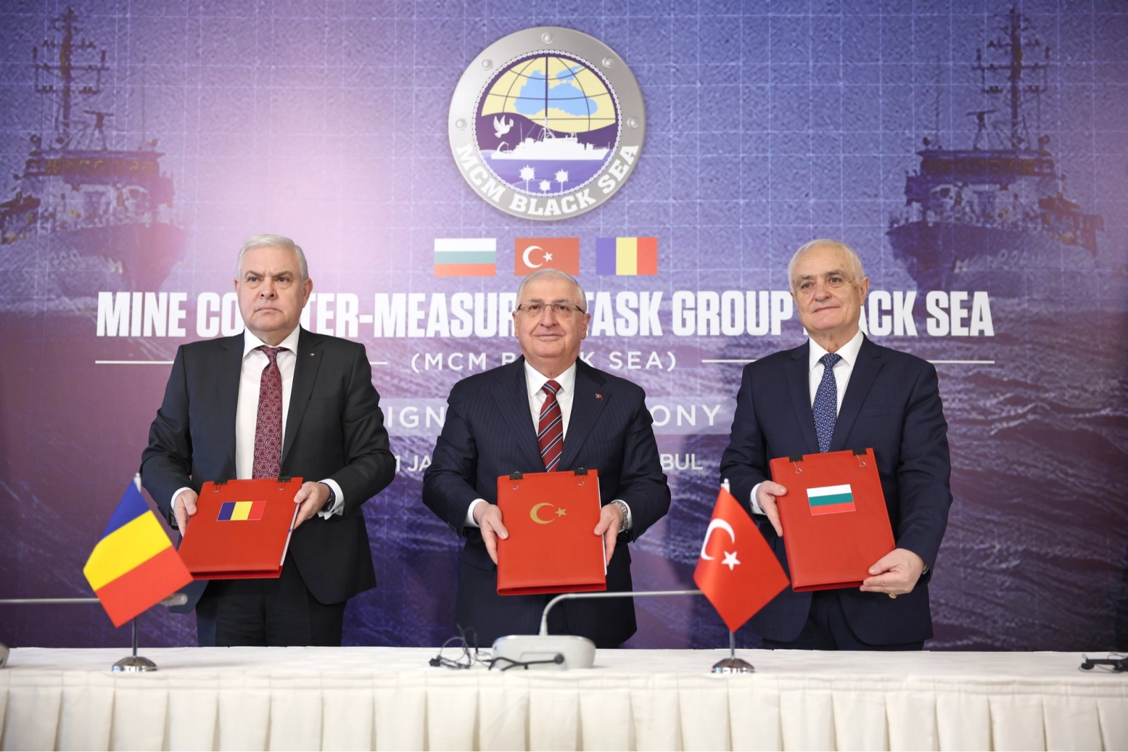 Rusya'nın Karadeniz'e bıraktığı serseri mayınlar Türkiye, dahil olmak üzere kıyıdaş ülkelerin sahil güvenliğini tehlikeye sokuyor. Karadeniz'deki mayın tehlikesiyle karşı karşıya kalan Türkiye, Romanya ve Bulgaristan'ın oluşturduğu "Üçlü Girişim" kapsamında 11 Ocak 2024 tarihinde İstanbul'da Karadeniz Mayın Karşı Tedbirleri (MCM Black Sea) Görev Grubu Mutabakatı imzalandı. İmza törenine; Milli Savunma Bakanı Yaşar Güler, Romanya Savunma Bakanı Melek Tilvar ve Bulgaristan Savunma Bakan Yardımcısı Atanas Zapryanov katıldı.