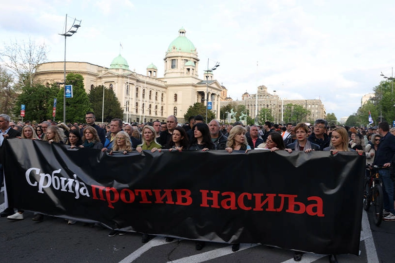Sırbistan'da düzenlenen iki silahlı saldırıyla birlikte 17 kişinin hayatını kaybetmesinin ardından vatandaşlar protestoya yöneldi. Vatandaşlar şiddeti teşvik ettiği için gazete ve televizyonların kapatılması ve hükumet yetkililerinin istifası için çağrıda bulunuyor.
