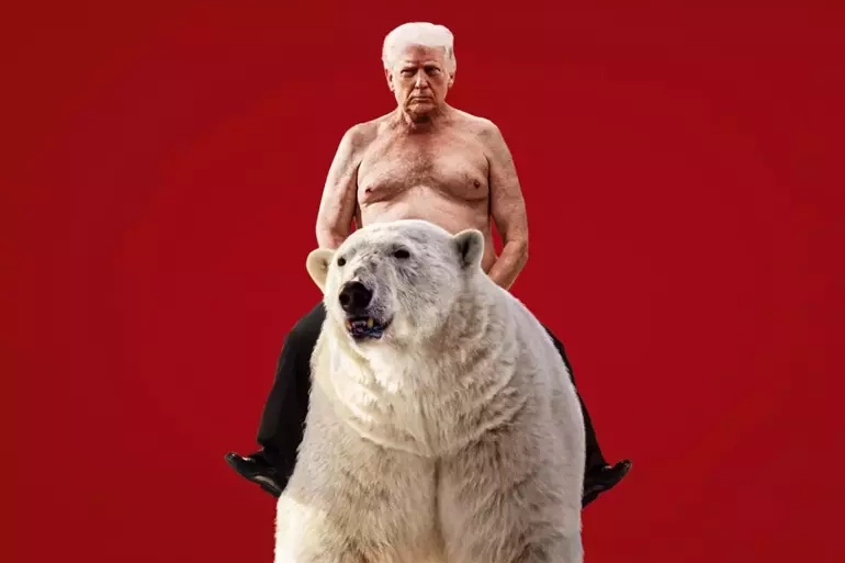 Kapakta Amerika Birlelik Devletleri (ABD) Başkanı Donald Trump’ın bir ayının üzerinde tasvir edilmesi, Rusya Devlet Başkanı Vladimir Putin’in geçmişte verdiği “ayıya binme” pozlarına açık bir gönderme olarak yorumlandı.