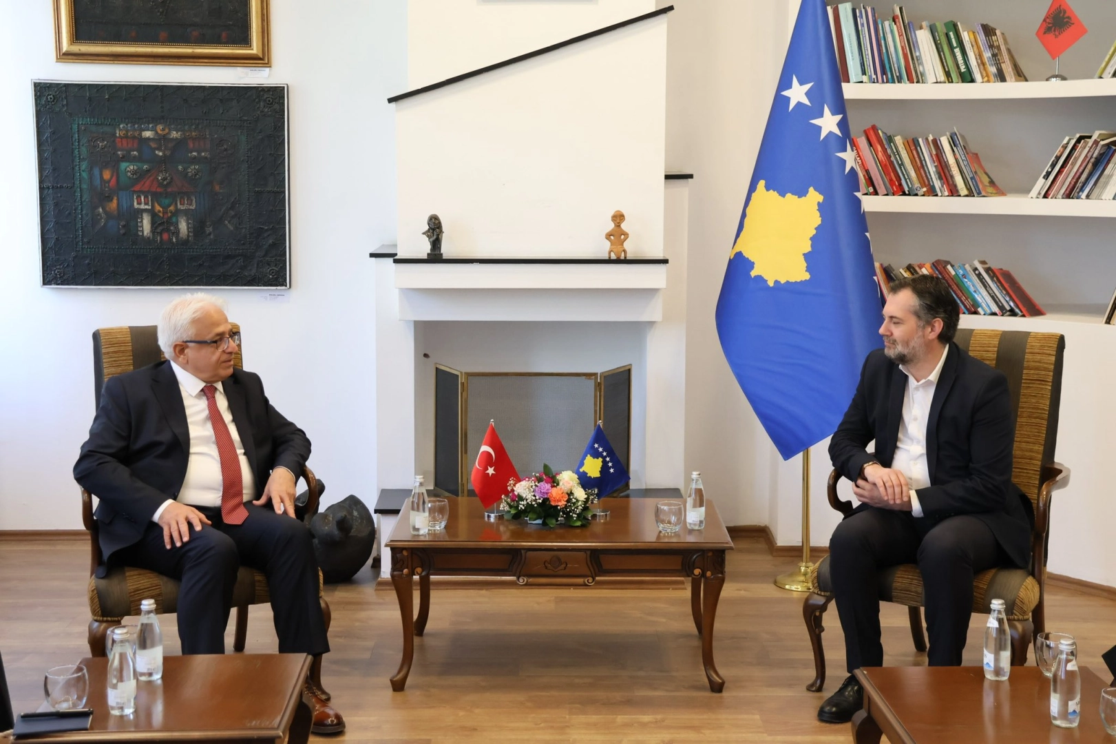 Görüşmenin ardından Dr. Çevik, Bakan Çeku'ya hediye takdim etti.