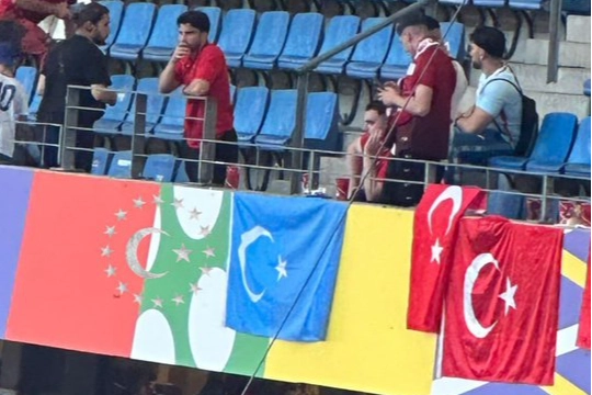 Millîlerin galibiyetini kutlayan Türk taraftarlar, Çin'in Doğu Türkistan'da gerçekleştirdiği soykırıma dikkat çekmek amacıyla tribünde ay yıldızlı gökbayrak açtı. Türk bayrakları arasında açılan Doğu Türkistan bayrağı ise görenleri gururlandırdı.