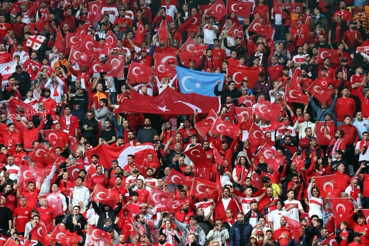 Millilerin galibiyetini kutlayan Türk taraftarlar, Çin'in Doğu Türkistan'da gerçekleştirdiği soykırıma dikkat çekmek amacıyla tribünde Doğu Türkistan Bayrağı açtı. Ay yıldızlı Türk bayrakları arasında açılan Doğu Türkistan bayrağı görenleri gururlandırdı.